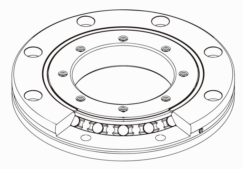 由于外圈和內圈都有安裝孔,安裝時不需要固定法蘭和支撐座。另外,由于外圈和內圈均為整體結構,安裝對性能幾乎沒有影響,因此能夠獲得穩定的旋轉精度和扭矩。適用于外圈和內圈旋轉的場合。